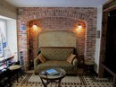 Приглушенный свет , темный потолок и стена из кирпича создают таинственную и завораживающую атмосферу