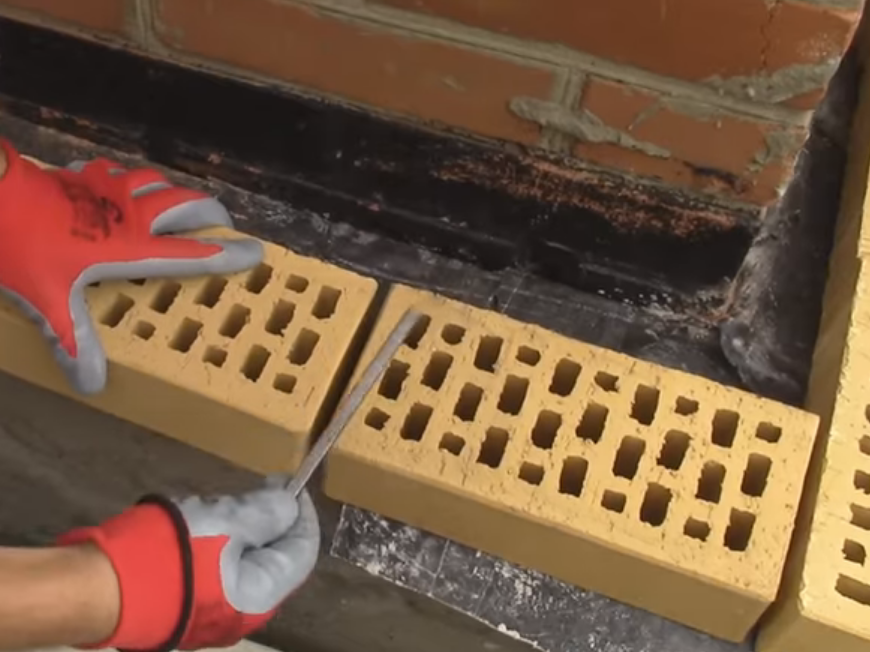 Раствор укладывается с V-образным отступом — это значительно упрощает установку кирпичей на место