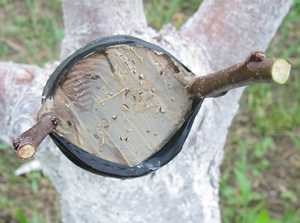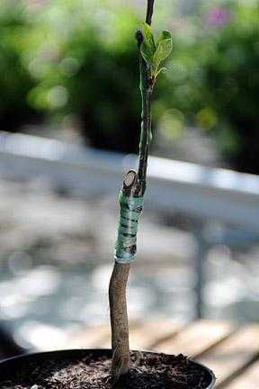 - Если к прививке привязать несколько палочек, возвышающихся над привоем, это убережет побег от птиц, которые любят садиться на обмотанные веточки.