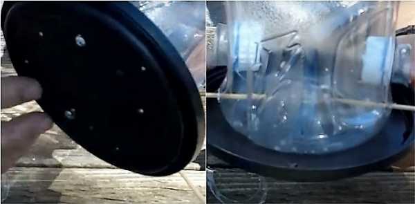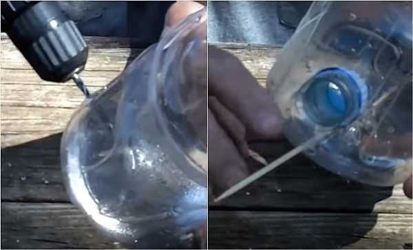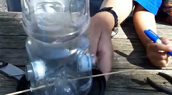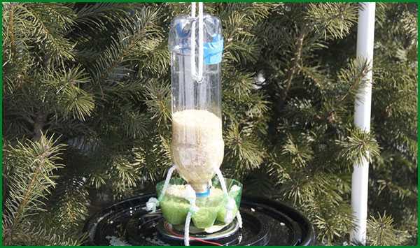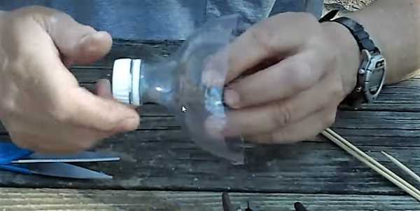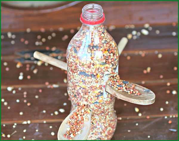 ΠΠ· ΠΏΠ»Π°ΡΡΠΈΠΊΠΎΠ²ΠΎΠΉ Π±ΡΡΡΠ»ΠΊΠΈ Π½Π° 1,5 ΠΈΠ»ΠΈ 2 Π»ΠΈΡΡΠ° ΠΌΠΎΠΆΠ½ΠΎ ΡΠ΄Π΅Π»Π°ΡΡ ΠΏΡΠΎΡΡΠ΅ΠΉΡΡΡ Π±ΡΠ½ΠΊΠ΅ΡΠ½ΡΡ ΠΊΠΎΡΠΌΡΡΠΊΡ. ΠΠ»Ρ ΡΡΠΎΠ³ΠΎ ΠΏΡΠΈΠ³ΠΎΡΠ°Π²Π»ΠΈΠ²Π°ΡΡ Π΄Π²Π΅ Π΄Π΅ΡΠ΅Π²ΡΠ½Π½ΡΠ΅ Β«Π»ΠΎΠΆΠΊΠΈΒ» Ρ Π΄Π»ΠΈΠ½Π½ΠΎΠΉ ΡΡΡΠΊΠΎΠΉ, Π΄Π΅Π»Π°ΡΡ Π² Π±ΡΡΡΠ»ΠΊΠ΅ ΠΎΡΠ²Π΅ΡΡΡΠΈΡ ΡΠΎΠΎΡΠ²Π΅ΡΡΡΠ²ΡΡΡΠ΅Π³ΠΎ Π΄ΠΈΠ°ΠΌΠ΅ΡΡΠ° ΠΈ ΠΏΡΠΎΡΠ°Π»ΠΊΠΈΠ²Π°ΡΡ ΡΡΡΠΊΡ Π½Π°ΡΠΊΠ²ΠΎΠ·Ρ. ΠΠ°Π΄ Π»ΠΎΡΠΊΠΎΠΌ-Β«Π»ΠΎΠΆΠΊΠΎΠΉΒ» Π΄Π΅Π»Π°ΡΡ Π½Π΅Π±ΠΎΠ»ΡΡΠΎΠ΅ ΠΎΡΠ²Π΅ΡΡΡΠΈΠ΅, ΡΡΠΎΠ±Ρ ΠΏΠΎΠ΄Π»Π΅ΡΠ΅Π²ΡΠ°Ρ ΠΏΡΠΈΡΠ° ΡΠΌΠΎΠ³Π»Π° Π²Π·ΡΡΡ Π·Π΅ΡΠ½ΡΡΠΊΠΈ. ΠΡΠΎΡΡΠΏΠ°ΡΡΠΈΠ΅ΡΡ Π·Π΅ΡΠ½Π° Π±ΡΠ΄ΡΡ ΠΎΡΡΠ°Π²Π°ΡΡΡΡ Π½Π° Π»ΠΎΡΠΊΠ΅, Π° Π½Π΅ ΠΏΠ°Π΄Π°ΡΡ Π½Π° Π·Π΅ΠΌΠ»Ρ.