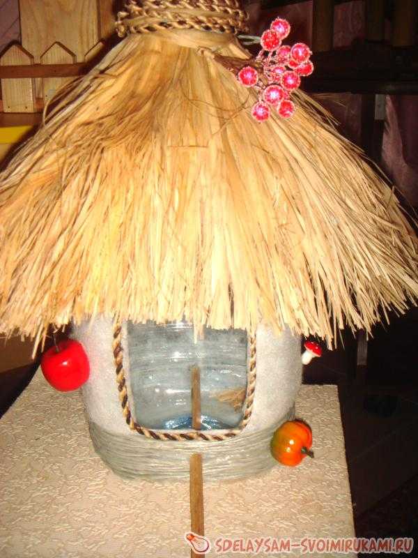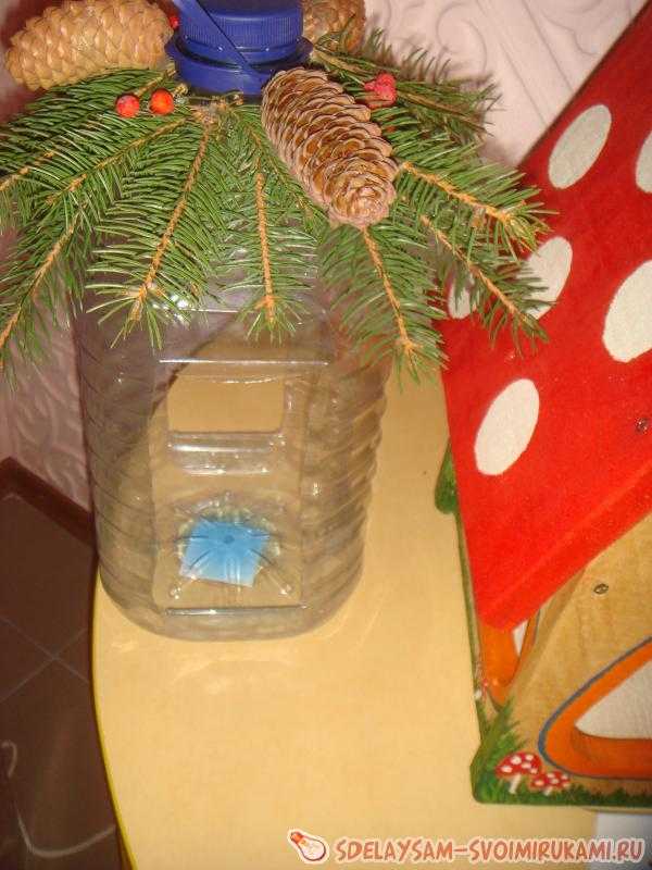 ΠΡΠ»ΠΈ Π² ΡΠ°ΡΠΏΠΎΡΡΠΆΠ΅Π½ΠΈΠΈ Π΅ΠΌΠΊΠΎΡΡΡ Π½Π° 1,5 Π»ΠΈΡΡΠ°, ΡΠΎ Π΄Π΅Π»Π°Π΅ΠΌ ΠΎΠ΄Π½ΠΎ ΠΎΡΠ²Π΅ΡΡΡΠΈΠ΅, Π½ΠΎ Π΄ΠΎΡΡΠ°ΡΠΎΡΠ½ΠΎ Π±ΠΎΠ»ΡΡΠΎΠ΅. ΠΠ±ΡΠ°Π±ΠΎΡΠ°Π² ΠΊΡΠ°Ρ ΡΠ²Π΅ΡΠ½ΡΠΌ ΠΌΠ°ΡΠ΅ΡΠΈΠ°Π»ΠΎΠΌ, ΠΏΠΎΠ»ΡΡΠ°Π΅ΠΌ ΠΈ Π±Π΅Π·ΠΎΠΏΠ°ΡΠ½ΡΡ, ΠΈ ΡΡΠΊΡΡ ΠΊΠΎΡΠΌΡΡΠΊΡ. Π§ΡΠΎΠ±Ρ Π·Π°ΠΊΡΠ΅ΠΏΠΈΡΡ Π½Π° Π΄Π΅ΡΠ΅Π²Π΅, Π΅Π΅ Π΄ΠΎΡΡΠ°ΡΠΎΡΠ½ΠΎ ΠΏΠΎΠ΄Π²ΡΠ·Π°ΡΡ Π·Π° Π³ΠΎΡΠ»ΡΡΠΊΠΎ ΠΏΡΠΎΡΠ½ΠΎΠΉ Π»Π΅Π½ΡΠΎΠΉ ΠΊ Π²Π΅ΡΠΊΠ΅.