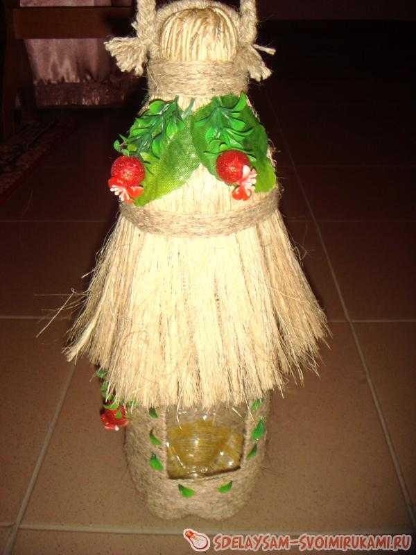 ΠΡΠ»ΠΈ ΠΏΡΠΎΡΠ²ΠΈΡΡ Π½Π΅ΠΌΠ½ΠΎΠ³ΠΎ ΡΠ°Π½ΡΠ°Π·ΠΈΠΈ ΠΈ ΠΏΡΠΈΠ²Π»Π΅ΡΡ ΠΊ ΠΏΡΠΎΡΠ΅ΡΡΡ Π΄Π΅ΡΡΠΊΠΎΠ΅ Π²ΠΎΠΎΠ±ΡΠ°ΠΆΠ΅Π½ΠΈΠ΅, ΡΠΎ ΡΠ°ΠΌΠΎΠ΄Π΅Π»ΡΠ½Π°Ρ ΠΊΠΎΡΠΌΡΡΠΊΠ° ΠΈΠ· ΠΏΠ»Π°ΡΡΠΈΠΊΠΎΠ²ΠΎΠΉ Π±ΡΡΡΠ»ΠΊΠΈ ΡΡΠ°Π½Π΅Ρ Π½Π΅ΠΎΠ±ΡΡΠ½ΡΠΌ Π΄Π΅ΠΊΠΎΡΠΎΠΌ Π΄Π»Ρ ΡΠ°Π΄Π°. Π‘Π°ΠΌΠΎΠ΅ ΠΏΡΠ°ΠΊΡΠΈΡΠ½ΠΎΠ΅ ΡΠ΅ΡΠ΅Π½ΠΈΠ΅ β ΠΎΠ±ΠΌΠΎΡΠ°ΡΡ ΡΠ°ΡΡ Π±Π΅ΡΠ΅Π²ΠΊΠΎΠΉ. Π§ΡΠΎΠ±Ρ Π·Π°ΠΊΡΠ΅ΠΏΠΈΡΡ Π²Π΅ΡΠ΅Π²ΠΊΡ, Π΅Π΅ ΡΠΌΠ°ΡΠΈΠ²Π°ΡΡ Π² ΠΊΠ»Π΅Π΅Π²ΠΎΠΉ ΠΎΡΠ½ΠΎΠ²Π΅.