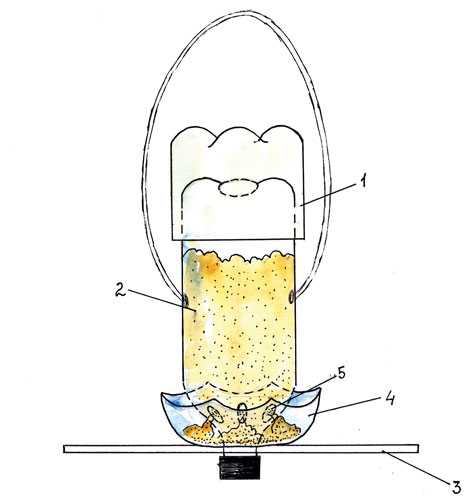 ΠΠ· 5-Π»ΠΈΡΡΠΎΠ²ΠΎΠΉ ΠΊΠ°Π½ΠΈΡΡΡΡ ΠΈ 1,5-Π»ΠΈΡΡΠΎΠ²ΠΎΠΉ Π±ΡΡΡΠ»ΠΊΠΈ ΠΏΠΎΠ»ΡΡΠΈΡΡΡ Ρ ΠΎΡΠΎΡΠ°Ρ ΠΊΠΎΡΠΌΡΡΠΊΠ° Ρ Π±ΡΠ½ΠΊΠ΅ΡΠΎΠΌ. ΠΠΎΡΡΠ°ΡΠΎΡΠ½ΠΎ Π²ΡΡΠ΅Π·Π°ΡΡ Ρ ΠΊΠ°Π½ΠΈΡΡΡΡ Π±ΠΎΠ»ΡΡΠΎΠ΅ ΠΎΠΊΠΎΡΠΊΠΎ Ρ ΠΎΠ΄Π½ΠΎΠΉ ΡΡΠΎΡΠΎΠ½Ρ, Π° Ρ 1,5-Π»ΠΈΡΡΠΎΠ²ΠΎΠΉ Π±ΡΡΡΠ»ΠΊΠΈ ΡΡΠ΅Π·Π°ΡΡ Π΄Π½ΠΎ ΠΈ ΠΏΠΎΠ΄Π²ΡΠ·Π°ΡΡ Π΅Π΅ Π²Π½ΡΡΡΠΈ ΠΊΠ°Π½ΠΈΡΡΡΡ Π²Π½ΠΈΠ· Π³ΠΎΡΠ»ΡΡΠΊΠΎΠΌ, ΡΠ°ΠΊ, ΡΡΠΎΠ±Ρ ΡΠ΅ΡΠ΅Π· ΠΊΡΡΡΠΊΡ ΠΊΠ°Π½ΠΈΡΡΡΡ ΠΌΠΎΠΆΠ½ΠΎ Π±ΡΠ»ΠΎ Π΄ΠΎΡΡΠΏΠ°ΡΡ Π·Π΅ΡΠ½ΠΎ. Π ΡΠ΅Π·ΡΠ»ΡΡΠ°ΡΠ΅ ΠΏΠΎΠ»ΡΡΠΈΡΡΡ Π·Π°ΡΠΈΡΠ΅Π½Π½Π°Ρ ΠΎΡ Π²Π΅ΡΡΠ° ΠΈ Π΄ΠΎΠΆΠ΄Ρ ΠΊΠΎΡΠΌΠΎΠ²Π°Ρ Π±Π°Π·Π° Π΄Π»Ρ ΠΏΠ΅ΡΠ½Π°ΡΡΡ .