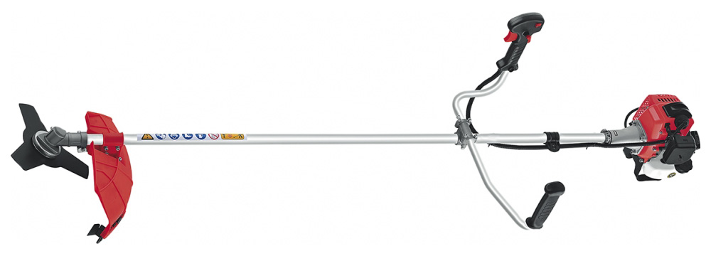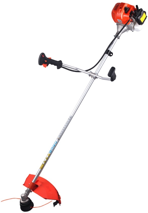 Моторная коса предназначена для стрижки лугов, кустарников или зарослей даже в труднодоступных местах. Для более тонкой растительности можно использовать нейлоновые нитки или травинку, тверже растения (кустарники, небольшие древесные растения, надземные растения и т. д.) срезаются специальными дисками. Двухтактный бензиновый двигатель обеспечивает стабильную мощность, плавное регулирование газа обеспечивает комфортную работу. Передача мощности двигателя осуществляется посредством неподвижного вала. установлен в подшипниках и угловом редукторе с шестернями, передающими крутящий момент от вала к режущему инструменту.Передняя рукоятка имеет особую U-образную форму, что значительно упрощает работу на труднопроходимой местности.