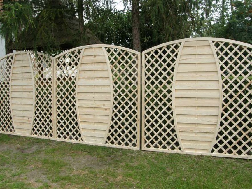 Полотна забора могут иметь самый невероятный вид, и все зависит от фантазии разработчика. Забор может быть строгим и классическим или же необычным, на каждой секции которого будет собственный рисунок. Для того чтобы продлить срок службы такого забора и сделать его более привлекательным, можно его покрасить в подходящий цвет.