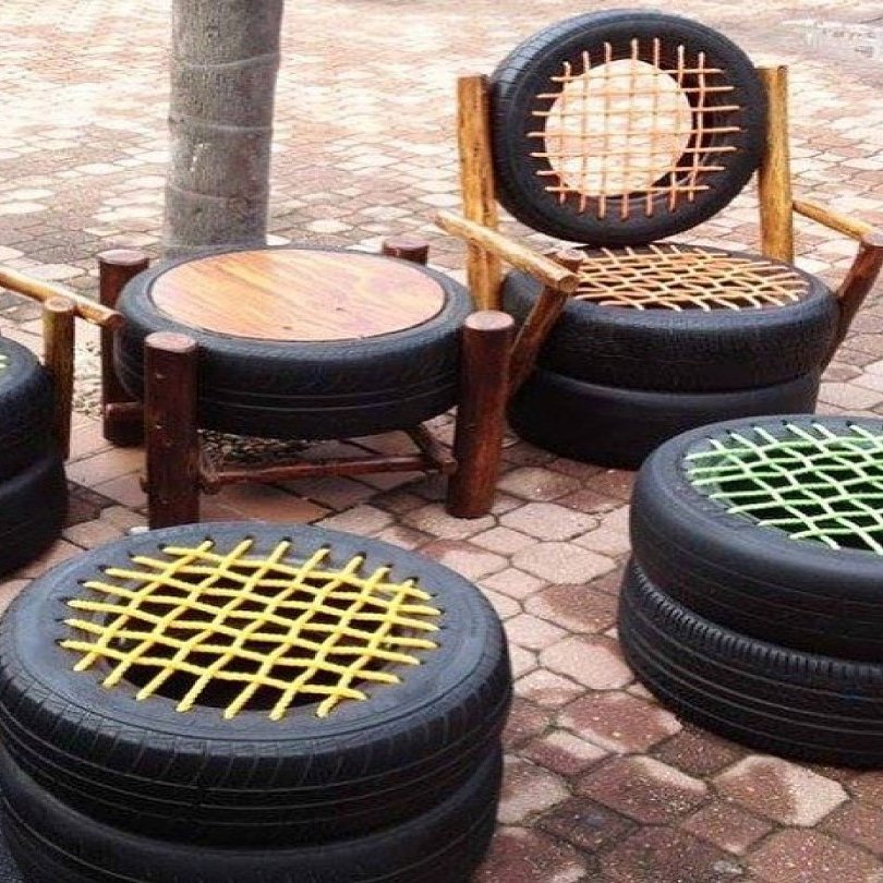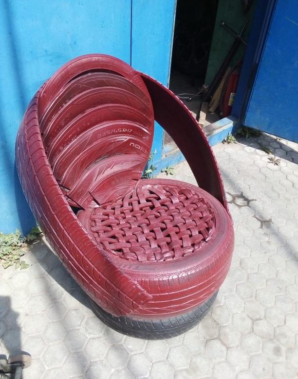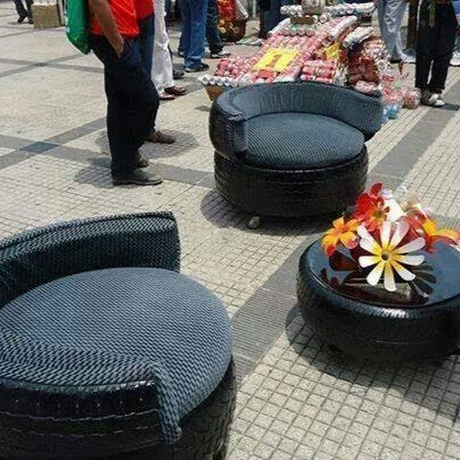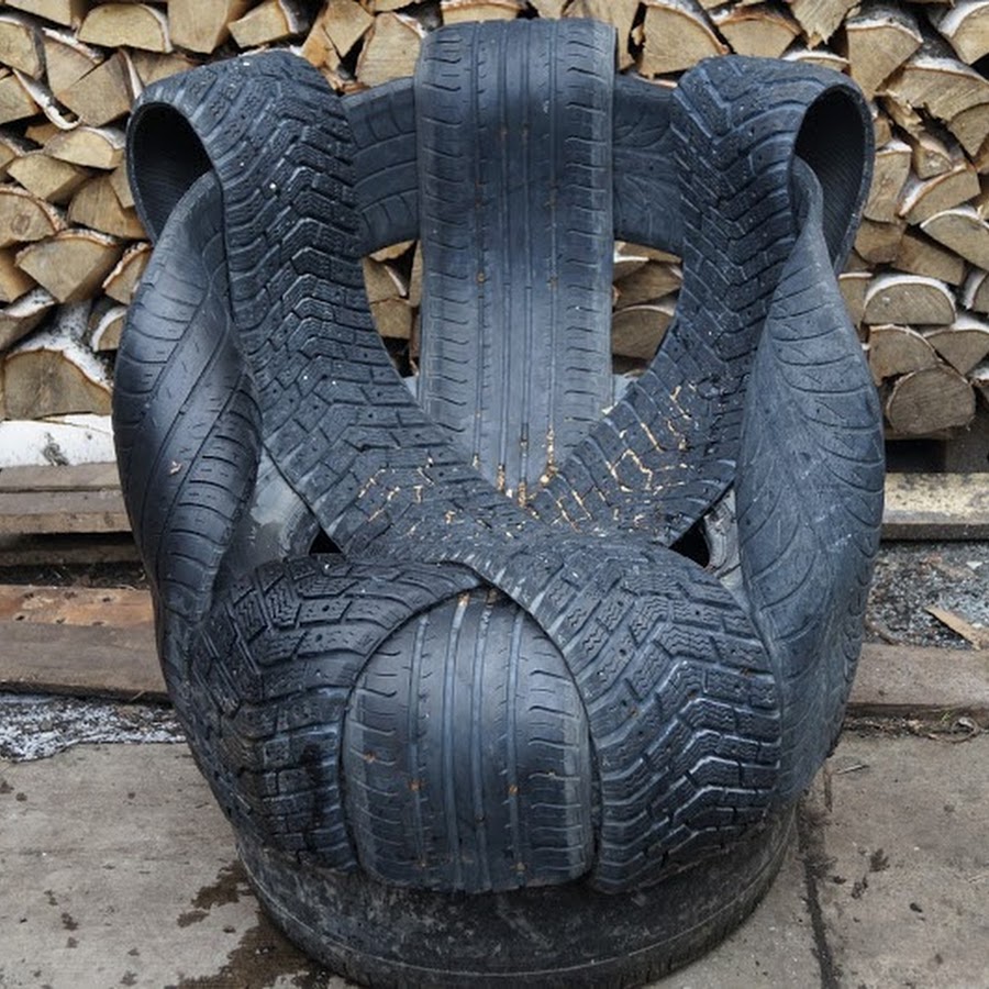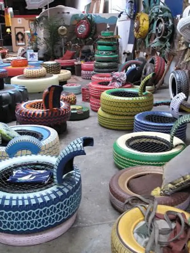 Обтянутые автопокрышки подарили новую жизнь вышедшим из пользования предметам.