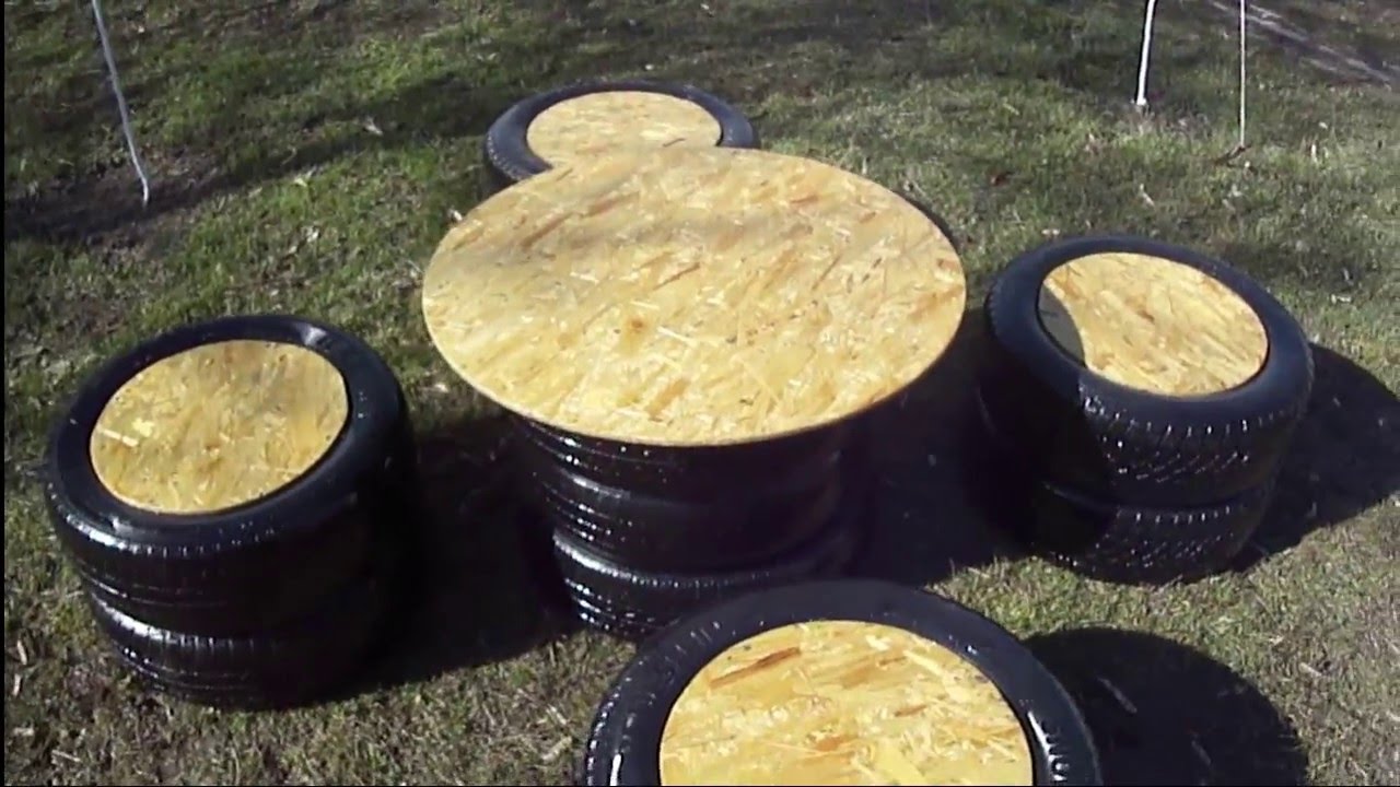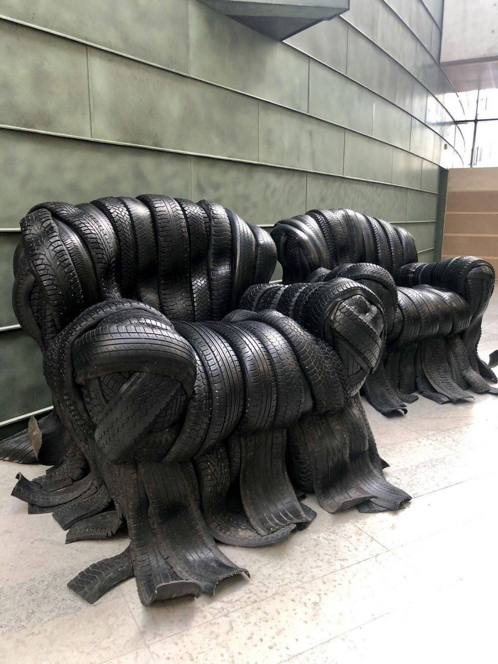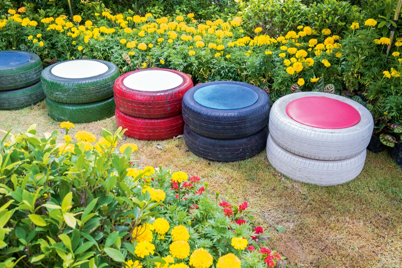 Обтянутые автопокрышки подарили новую жизнь вышедшим из пользования предметам.