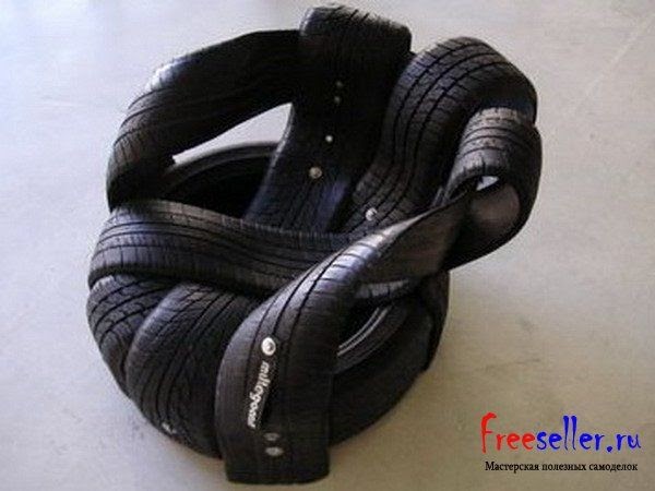 Умельцы мастерят мебель из деревянных поддонов, полипропиленовых труб, пластиковых и винных бутылок. Новое применение находят и для старых автомобильных покрышек. Из них делают кресла, столы, пуфики и даже диваны. Практичная и долговечная мебель используется в саду, для обустройства гаража, в качестве необычного акцента в интерьере.