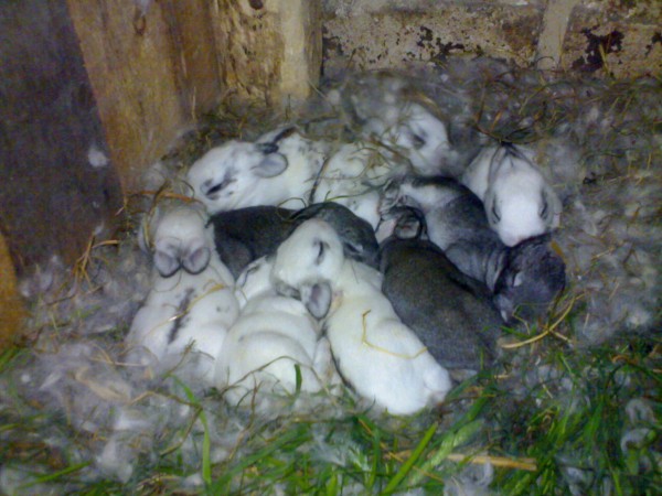 Поэтому она заранее отказывается от выводка. Беременную самку кормят 3–4 раза в день. Ежедневный рацион увеличивают наполовину. Если крольчиха не сделала гнездо и родила, нужно ей помочь. Чтобы исправить ситуацию, осторожно надергайте немного пуха у нее на животе и груди. Допустимо добавить в маточник вату, но ни в коем случае нельзя выстилать гнездо шерстью других животных. Крольчиха испугается чужого запаха и может даже проявить агрессию по отношению к новорожденным.