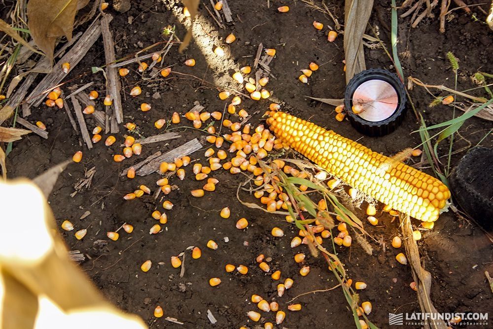 Из мужских цветков пыльца при участии ветра попадает на данные столбики, что приводит к оплодотворению, в итоге формируются большие зерновки, которые и являются плодами данного растения. На стержне початка зерновки размещаются вертикальными рядами, при этом они очень тесно прижаты друг к другу. Форма зерновки может быть кубической либо округлой. В одном початке может сформироваться около 1000 зерновок, которые могут обладать бледно-красным, фиолетовым, желтым, синим и практически черным окрасом.