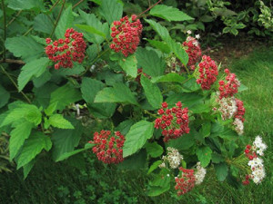 - бузина красная с красивой листвой, на которой вслед за цветками образуются красные плоды.
