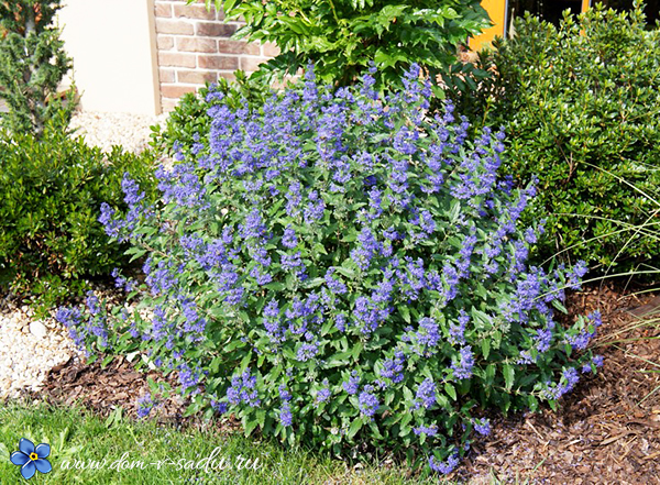 Кариоптерис добавит саду голубых оттенков, так как его кисти имеют именно такой цвет. Это цветущий кустарник с округлой кроной для переднего плана бордюра. Высаживают их группами. К почве нетребователен. Достаточно зимостоек. Время цветения сентябрь — октябрь. Нужна обрезка кустарника в марте.