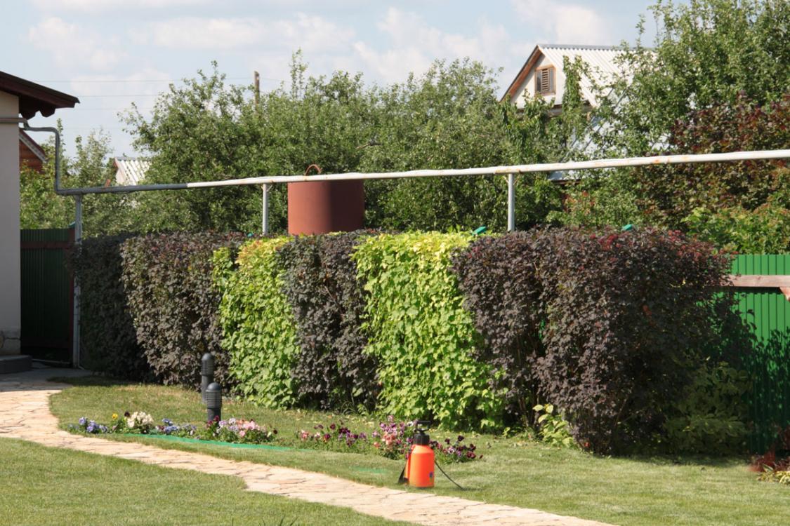 Из высоких кустов образуются 3 – 5-метровые изгороди. Их склонность к быстрой вегетации способствует получению полноценного забора за 2 – 3 года. Живая конструкция нуждается в контроле высоты.