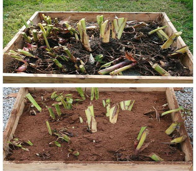 - Хорошо присыпать луковицы грунтом, закрыть лунки (за исключением тех, в которых высажены экземпляры с подросшими ростками), можно немного добавить торфа и обильно полить.