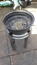 Такой очаг не очень тяжелый, поэтому его можно установить в любом удобном месте на участке или взять с собой на природу. Особенностью конструкции является использование 2-х одинаковых дисков от колес легкового автомобиля. Материал предварительно нужно подготовить к работе: у одного из них вырезать или вырезать середину так, чтобы остался только ободок.