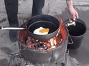Также колёсный диск может выполнять не только функции мангала, если установить решётку, то получится отличный барбекю. На решётку можно поставить сковороду или кастрюлю и приготовить пищу. Можно приспособить мангал под казанок.