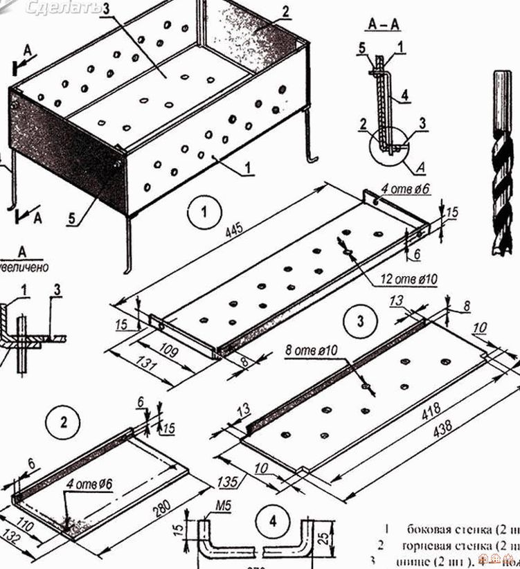 Когда-то работать с металлом учили в школе на уроках труда или производственного обучения: резать, сверлить, соединять две детали болтами с гайками или заклепками. Этих навыков достаточно тому, кто собирается сделать металлический мангал по собственным чертежам.