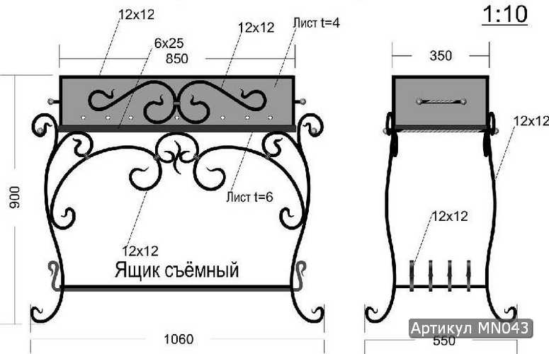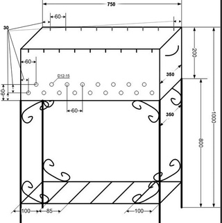 Во время создания чертежа важно точно указать размеры каждой детали конструкции. При определении оптимальных параметров стоит ориентироваться на стандартные изделия высотой 95 см и длиной ножек около 70 см. глубина жаровни в таком случае будет составлять 25 см, чего вполне достаточно для эффективной прожарки мяса.