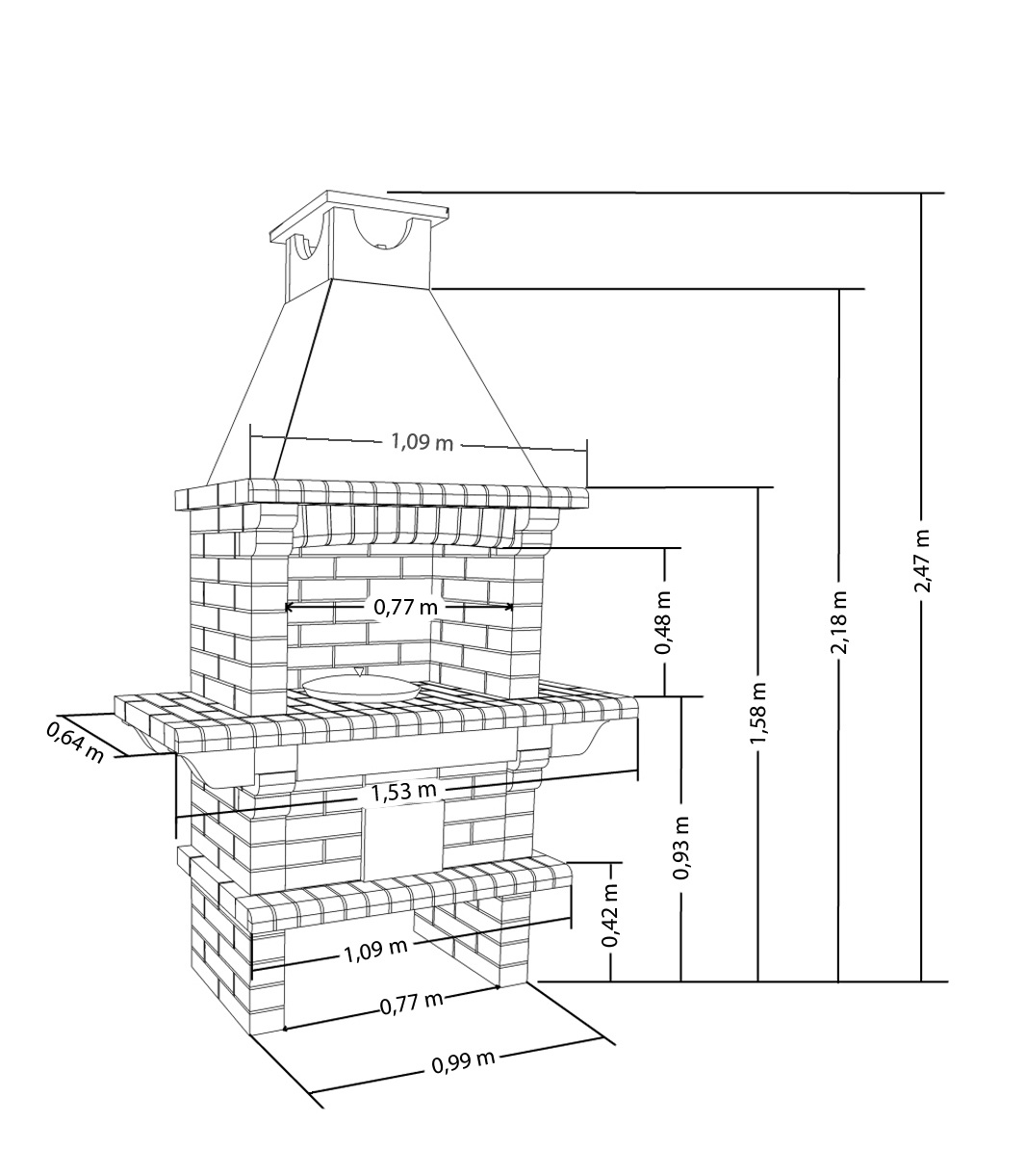 Ширину определяет длина шампуров. Самодельные шампуры могут быть какой угодно длины, но рабочая зона, где находится мясо, составляет максимум 50 см, обычно 28-30 см, поэтому ширину «с запасом» делать не стоит.