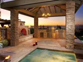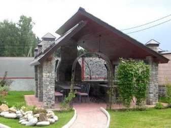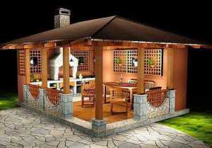 Женщинам вряд ли такой расклад понравится, поэтому мужчинам есть над чем задуматься по поводу того, как разгрузить хозяйку и удивить хозяев своими кулинарными способностями, не покидая пределы беседки – как говорится, «убить двух зайцев». Сразу можно представить, как меняется, и притом не в лучшую сторону, настроение сильной половины человечества. Но не спешите расстраиваться, так как речь пойдет о любимом занятии мужчин – приготовлении пищи на мангале. Это сооружение часто находится подальше от жилых сооружений, но может быть построена и беседка с мангалом своими руками, причем из различных материалов.