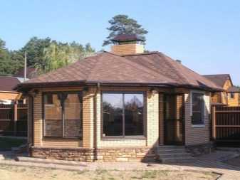 Закончив кладку трехканального дымохода, накрыли беседку битумной черепицей, но вы можете использовать другой кровельный материал