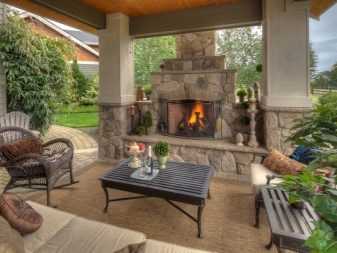 - Камин. Используется в основном для закрытых беседок как элемент дизайна. Однако функционально его вполне возможно использовать для приготовления продуктов на решетке или шампурах.