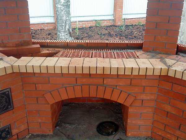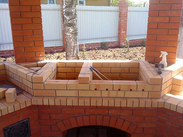 Продолжаем выкладывать барбекю из кирпича своими руками. На очереди топливник и столешница. По желанию можно устроить нишу для посуды.