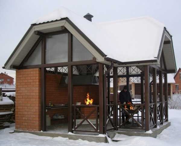 Построенная беседка с мангалом своими руками имеет некоторые конструктивные особенности, но на данном этапе надо определиться с конструкцией. Если она установлена на даче, и зимой там никого не будет, то незачем ее стеклить. Но в частном доме ситуация может быть несколько иной, и постепенно беседка может превратиться в летнюю кухню, в которой семья может собираться практически круглый год. В таком случае необходимо позаботиться, чтобы внутри сохранялось тепло. Как построить беседку, в которой можно будет собираться круглый год также будет описано в статье.
