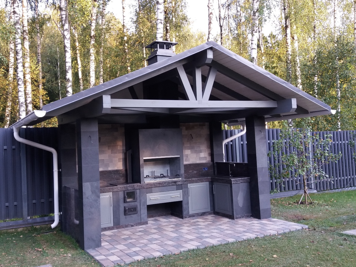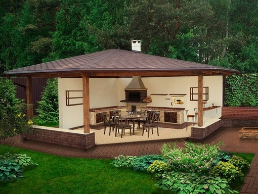 - крытые беседки с мангалом – просторные капитальные сооружения по типу дома;