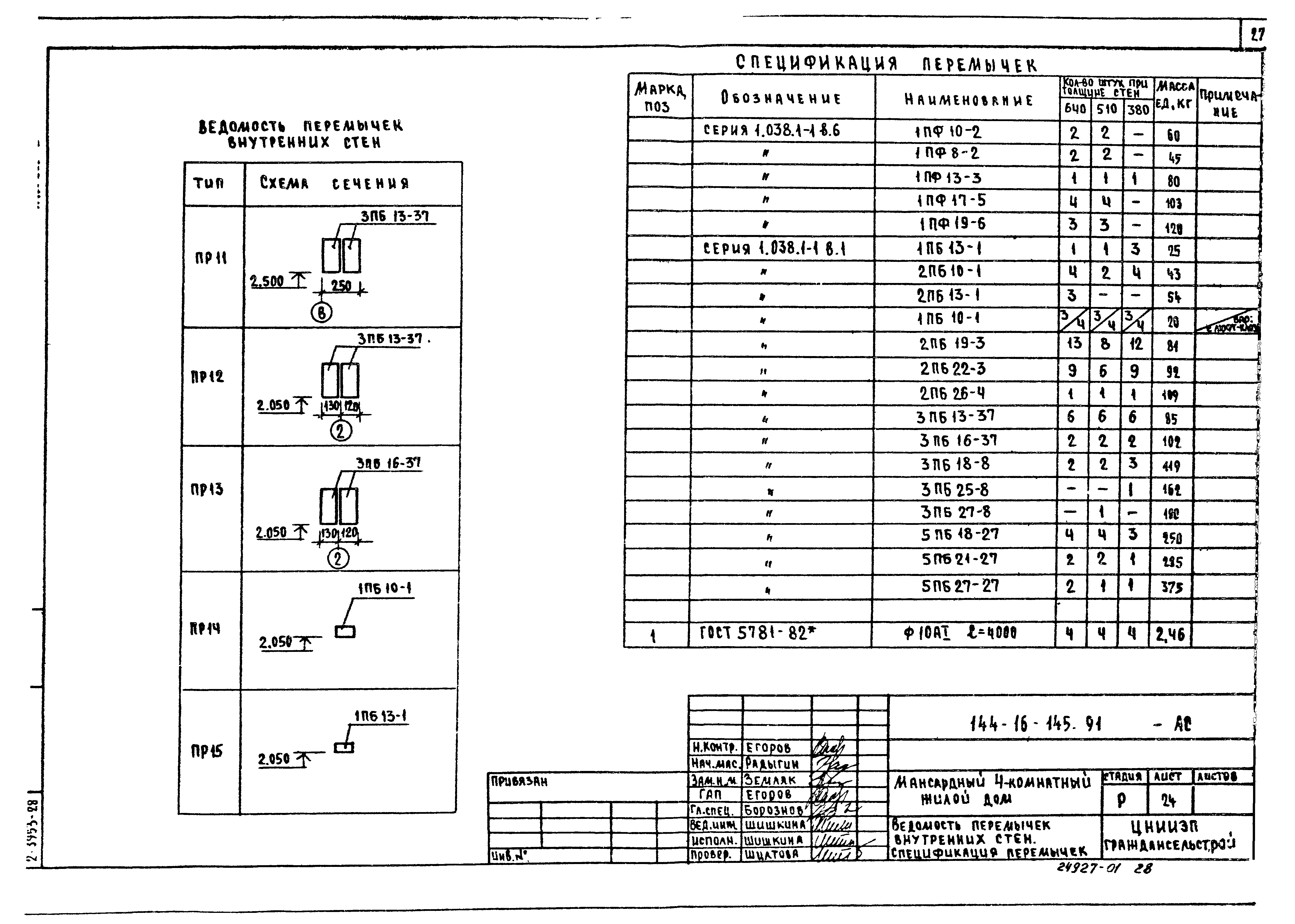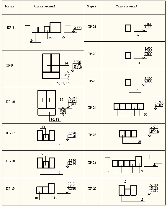 Первая группа – арабская цифра, обозначающая порядковый номер поперечного сечения железобетонной перемычки, тип перемычки и длину перемычки в дециметрах;