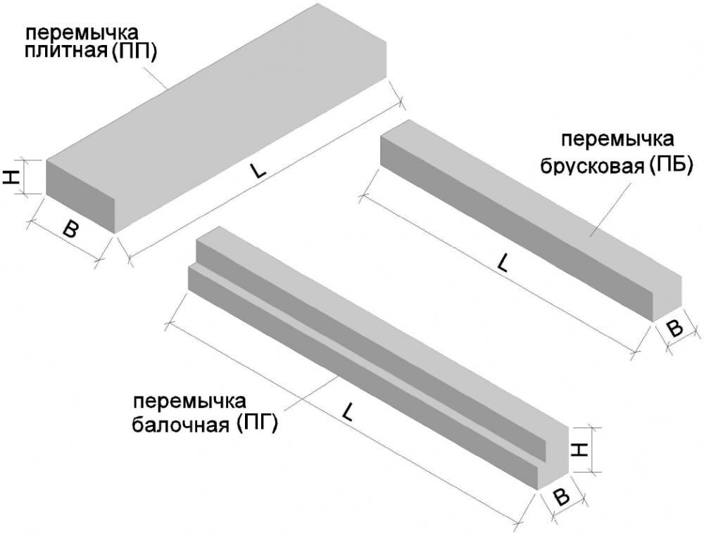 В соответствии с ГОСТами перемычки железобетонные выпускаются четырех видов: