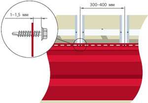 Оптимальный зазор между листом и шляпкой самореза составляет порядка 1 мм