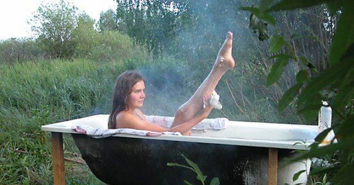 А у вас тоже есть такая ванна на даче, как на заднем плане?