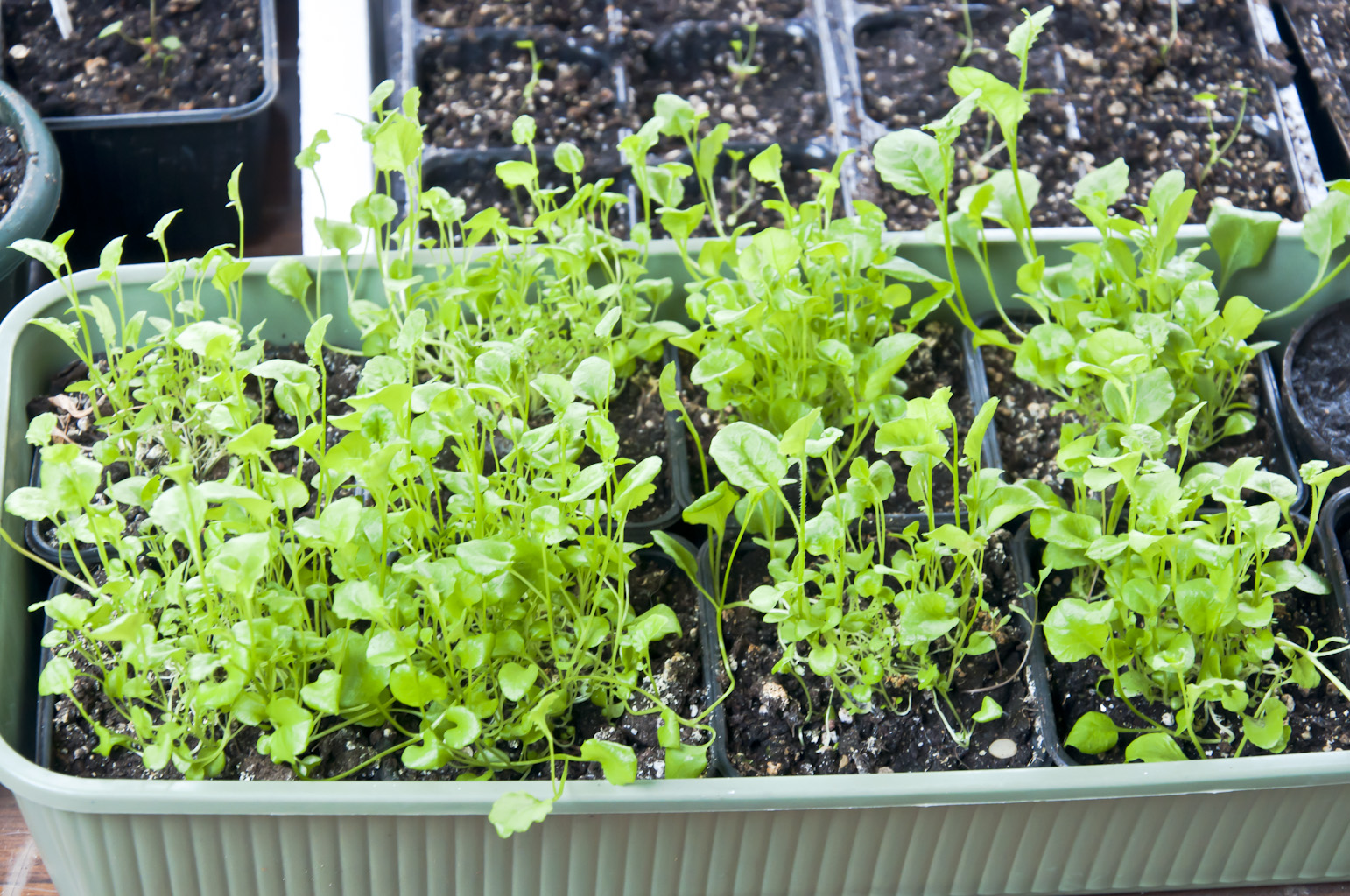 Поскольку я использовал технику густой посадки, я не жду, пока не увижу корни под контейнерами. Я знаю, что эти саженцы собираются вместе, поэтому мне нужно действовать как можно скорее.