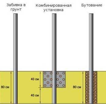 Три основных способа установки столбов в плотный грунтКакой бы способ вы ни выбрали, погружать стойки глубже 1 м бессмысленно, а оптимальная глубина, проверенная на практике, составляет 80 см. Говоря о том, сколько сантиметров длины столбов должно уйти в грунт, подразумевается, что секция изгороди имеет стандартные размеры: ширина пролета – 2,5 м, высота – 2 м.