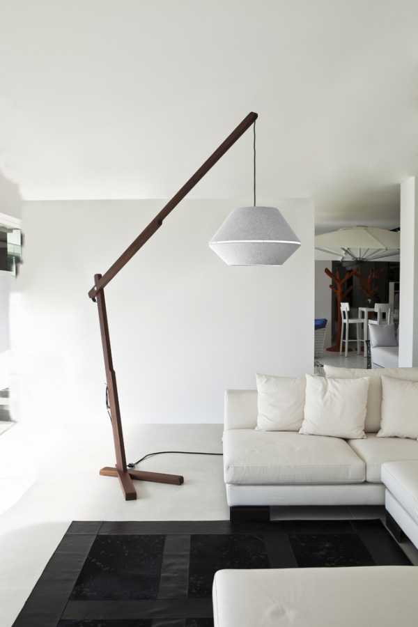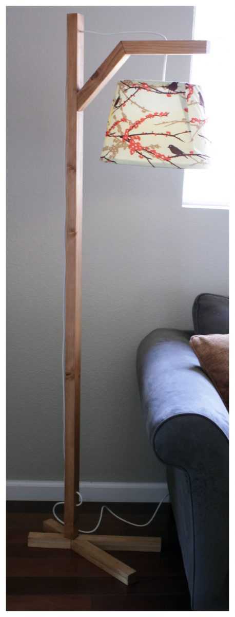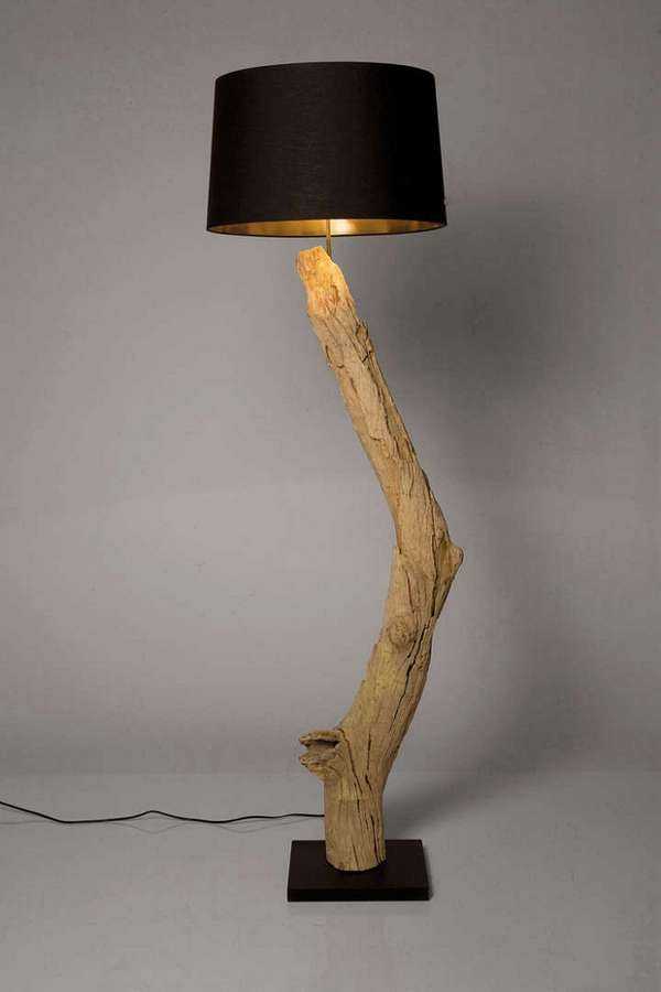 Если интерьер комнаты оформлен в довольно популярных в наши дни скандинавском или экостиле, можно изготовить торшер из дерева своими руками, а точнее, из веток деревьев, найти которые можно в любом парке или лесу. Массивная, расходящаяся в виде триноги ветка, послужит хорошим основанием для торшера, а верхняя часть — местом для абажура, крепящегося на веревке. Или же, наоборот, ствол можно вмонтировать в подставку из гипса, а на расходящихся ветвях зафиксировать несколько абажуров. Ствол можно украсить разноцветными нитками и кружевами. Следует обратить внимание на то, что дерево является легковоспламеняющимся материалом, поэтому, в целях безопасности, такие торшеры оснащают светодиодными или энергосберегающими лампочками.