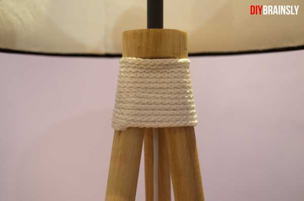 Теперь вид абажура меня устраивал. Я собрал свой торшер и стал смотреть, что же ещё можно в нём улучшить. Случайно я набрёл вот на это видео, в котором автор в конце наматывает на подставку толстый шнур. Мне понравилась идея и я применил её на своём торшере.