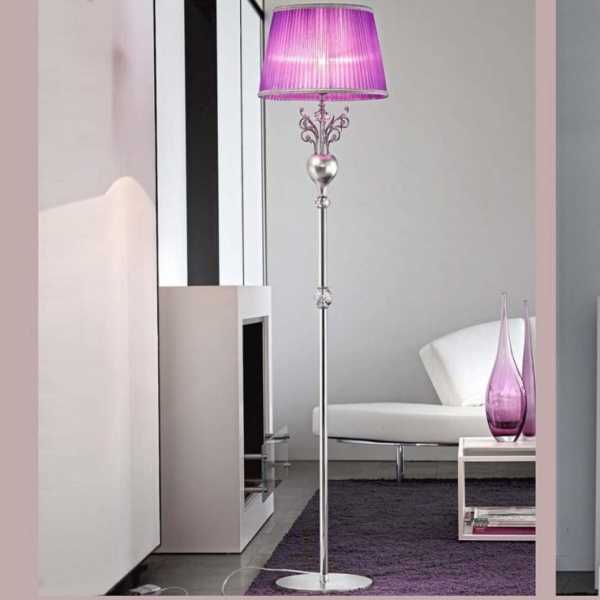 Можно также сделать торшер своими руками из ткани. В этом случае каркас будет представлять собой конструкцию из толстой проволоки. В качестве ткани можно использовать любой материал, но лучше непрозрачный (чтобы не было видно каркаса), такой как хлопок, тафта, темный шелк и пр. Наиболее подходящими цветами станут синий, желтый, оранжевый, зеленый или красный — они дадут теплый свет. Если выбрать ткань с цветочным принтом и украсить абажур изящными рюшами и бантиками — можно получить прекрасный торшер для комнаты в стиле кантри или прованс.