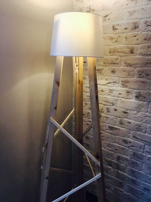 дерево — самодельный деревянный светильник сделает атмосферу в доме естественной и уютной. Абажур может быть выполнен на основе натуральных веток. Если ножки тоже будут деревянными, то они должны быть защищены от пожара. Сейчас невероятно популярен стиль «Эко» в интерьере, в рамках которого некоторые объекты изготавливаются из натуральных материалов;