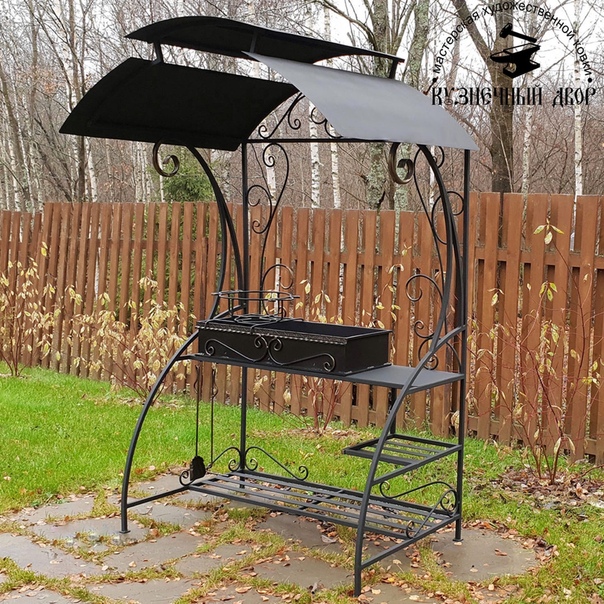 - Компактный кованый навес с мангалом.