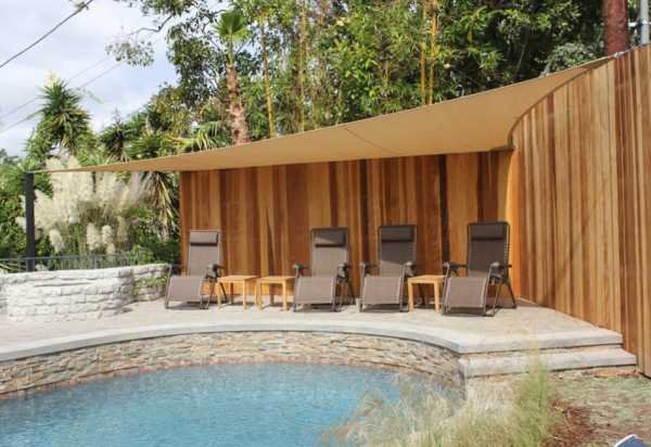 Укрытие из ткани помогает создать превосходную зону отдыха и способствует понижению температуры в прилегающих помещениях