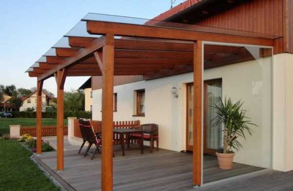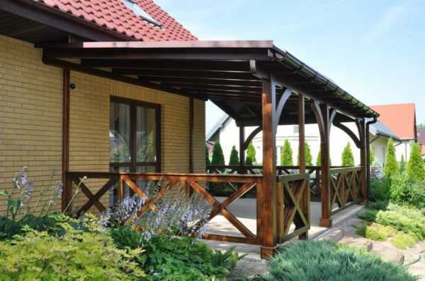 Навесы, пристроенные к дому. Фото-примеры конструкций из различных материалов и советы по монтажу своими руками в отдельной публикации нашего портала.