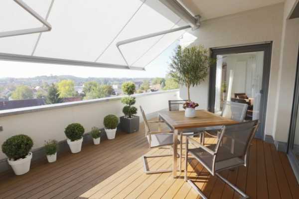 Для затенения небольших террас, или просторных лоджий и балконов хорошо подходит традиционная открытая маркиза. Складной механизм добавит удобства в ее пользовании и обеспечит ее долговечность