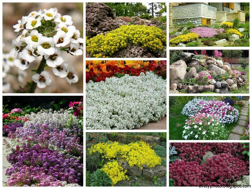 Морской алиссум. Это растение, благодаря своему внешнему виду также ещё называется каменка. Морской алиссум вырастает, как правило, не более 12−26 см, с густыми и большими соцветиями жёлтого, розового или белого цвета. Растение переносит морозы, но с температурой до минус 11 градусов, и на следующий года тут же начинает свой рост.