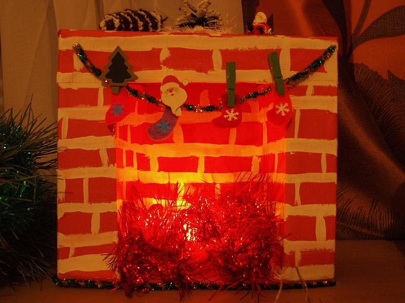 Все, камин готов! На него можно разместить любые новогодние аксессуары, внутрь поместить новогоднюю гирлянду, для эффекта мерцания, и фотографироваться!