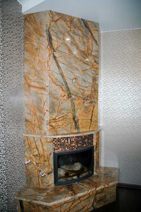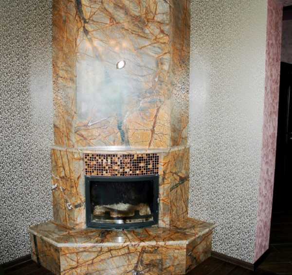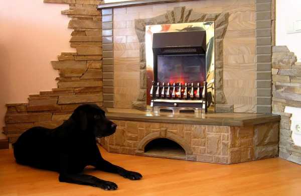 Облицовка печи декоративным камнем отличается от плитки тем, что для камня имеются в продаже специальные угловые элементы, которые позволяют сохранить рисунок (при укладке “вразбежку”).