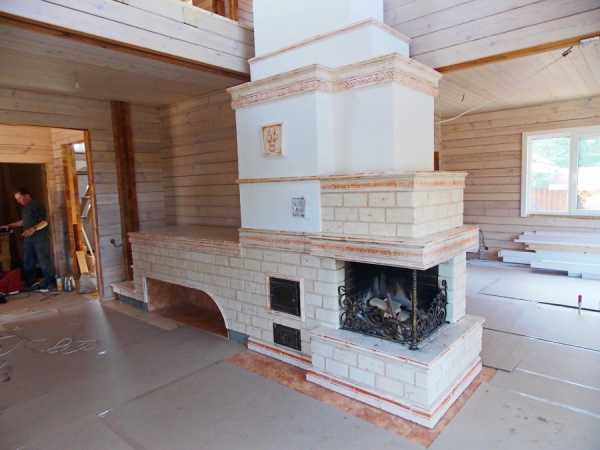 Существует вариант отделки печи натуральным камнем или побелкой, но это смотрится не настолько эстетично, нежели рассматриваемый нами вариант.