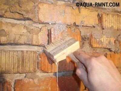 Перед началом работ желательно полностью удалить старый слой отделки и убрать всю пыль и другие частицы, углубив стыки между кирпичом.