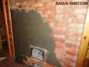 - Если на поверхности есть трещины, особенно с видимой копотью, их нужно расшить, зачистить от сажи и заделать ремонтным жаропрочным составом выбранной марки. В противном случае в этом месте будет возникать локальный перегрев, и впоследствии возможно разрушение штукатурного слоя.