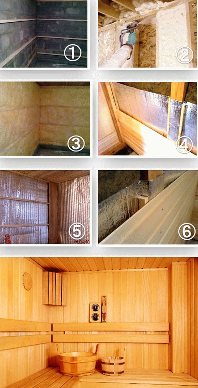 При выборе материалов для утепления следует руководствоваться их безопасностью в обычной высокотемпературной парилке, т. Е. Огнестойкостью и устойчивостью к резким перепадам температур . Наиболее распространенными материалами являются минеральная вата в качестве теплоизоляционного материала и алюминий. фольга как пароизоляция.Их отличает высокая надежность и простота эксплуатации.